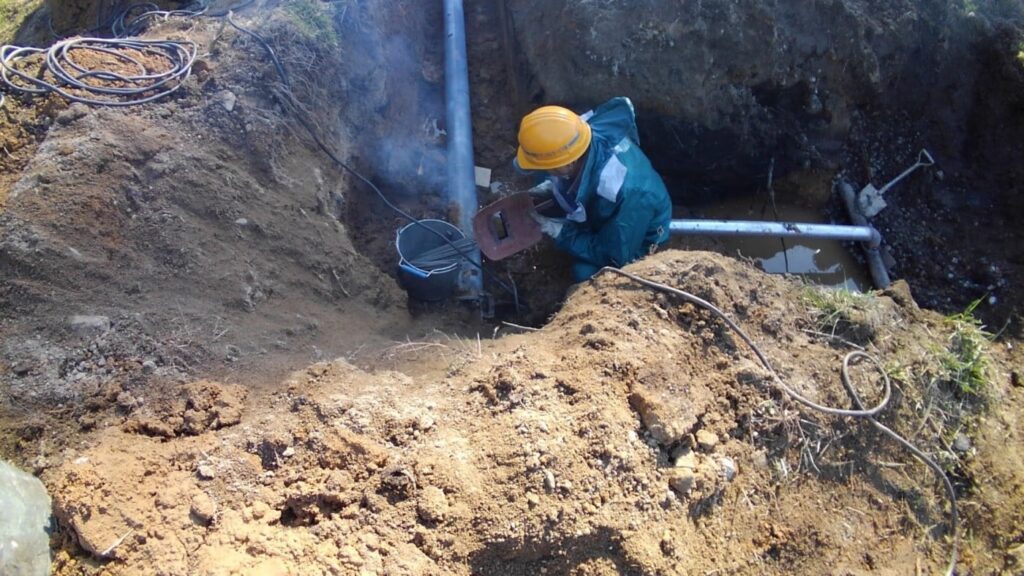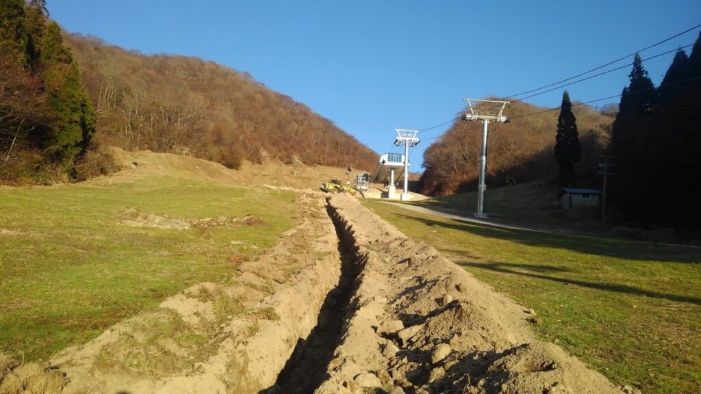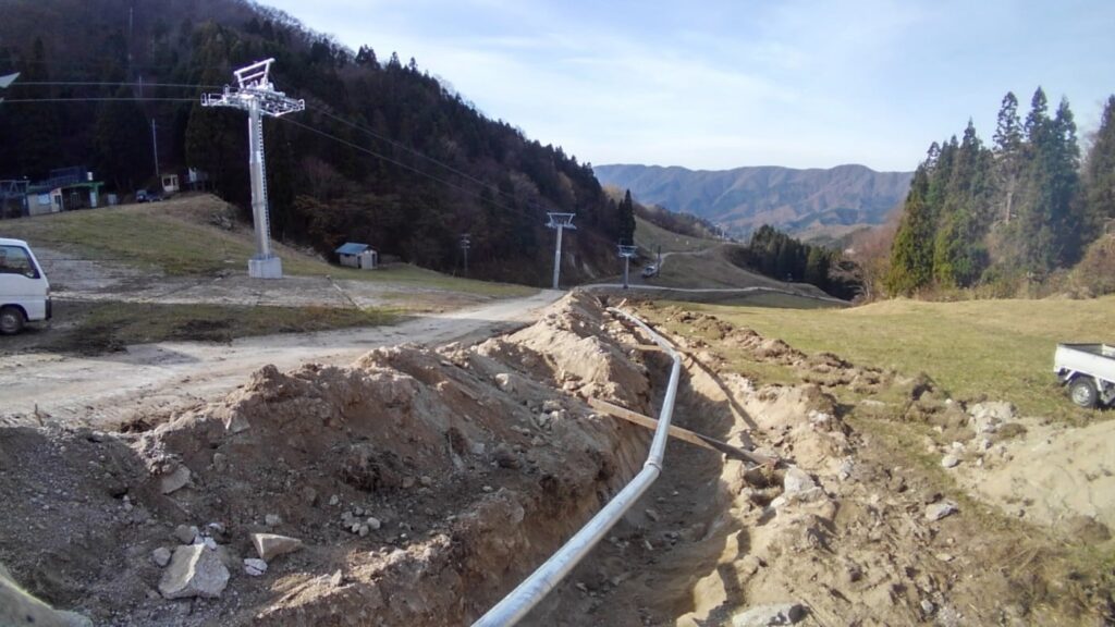 スキーシーズンに向け、人工降雪機配管工事を施工しています。
