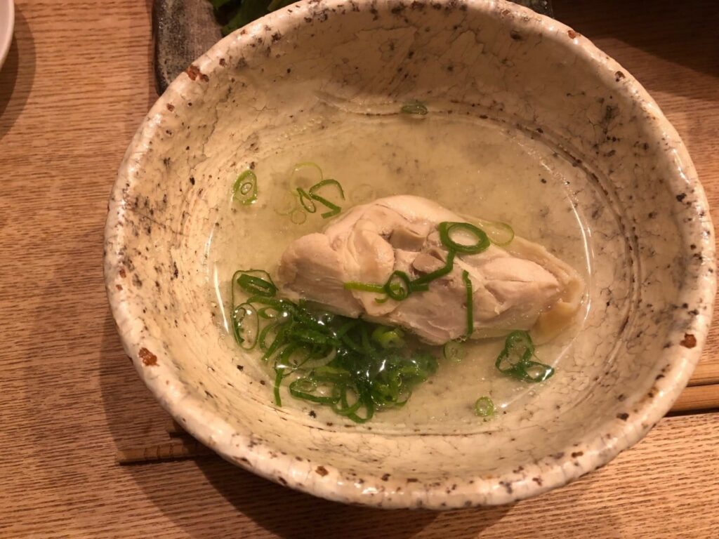 元祖水炊きは先に塩で食す?この専門店では鶏出汁に一つまみの塩を入れ、始めに鶏肉(鶏団子)のみで。と薦められる