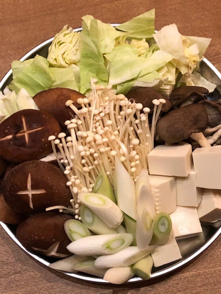 鍋に初めて野菜(福岡産)や豆腐を投入