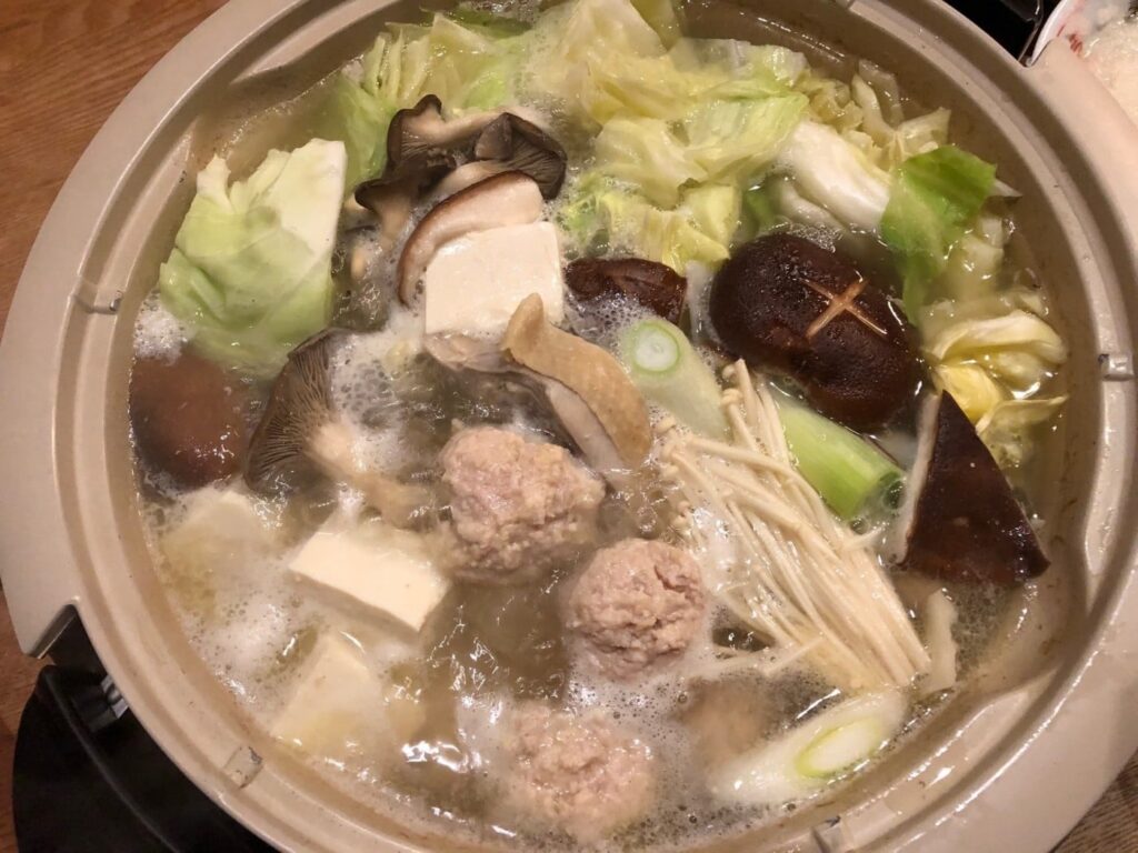 鶏出汁で食べるシンプルなお鍋です